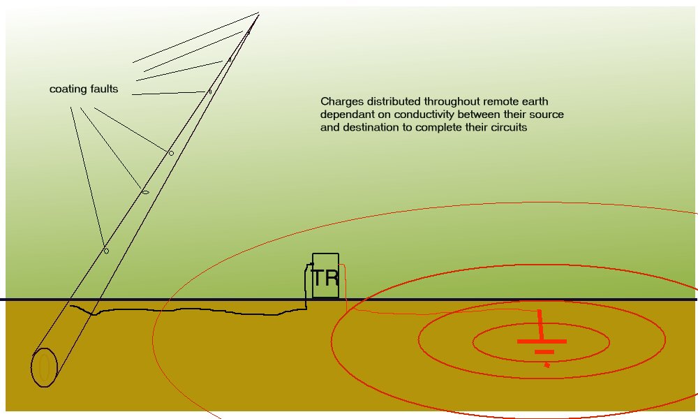 The corrosion current will pass through the pipeline metal from the cathode to the anode, from which it passes into the earth electrolyte. The direction and strength of the currents within the metal, depend on the location and size of each coating fault as well as the EMF generated by each individual corrosion reaction.