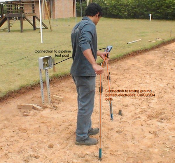 Digital recording voltmeters can be set up by the operator to measure and record a voltage at set time intervals and this is easily synchronised with any switching device controlling the sources of energy that impress charges into the ground and drain those charges from the pipeline.